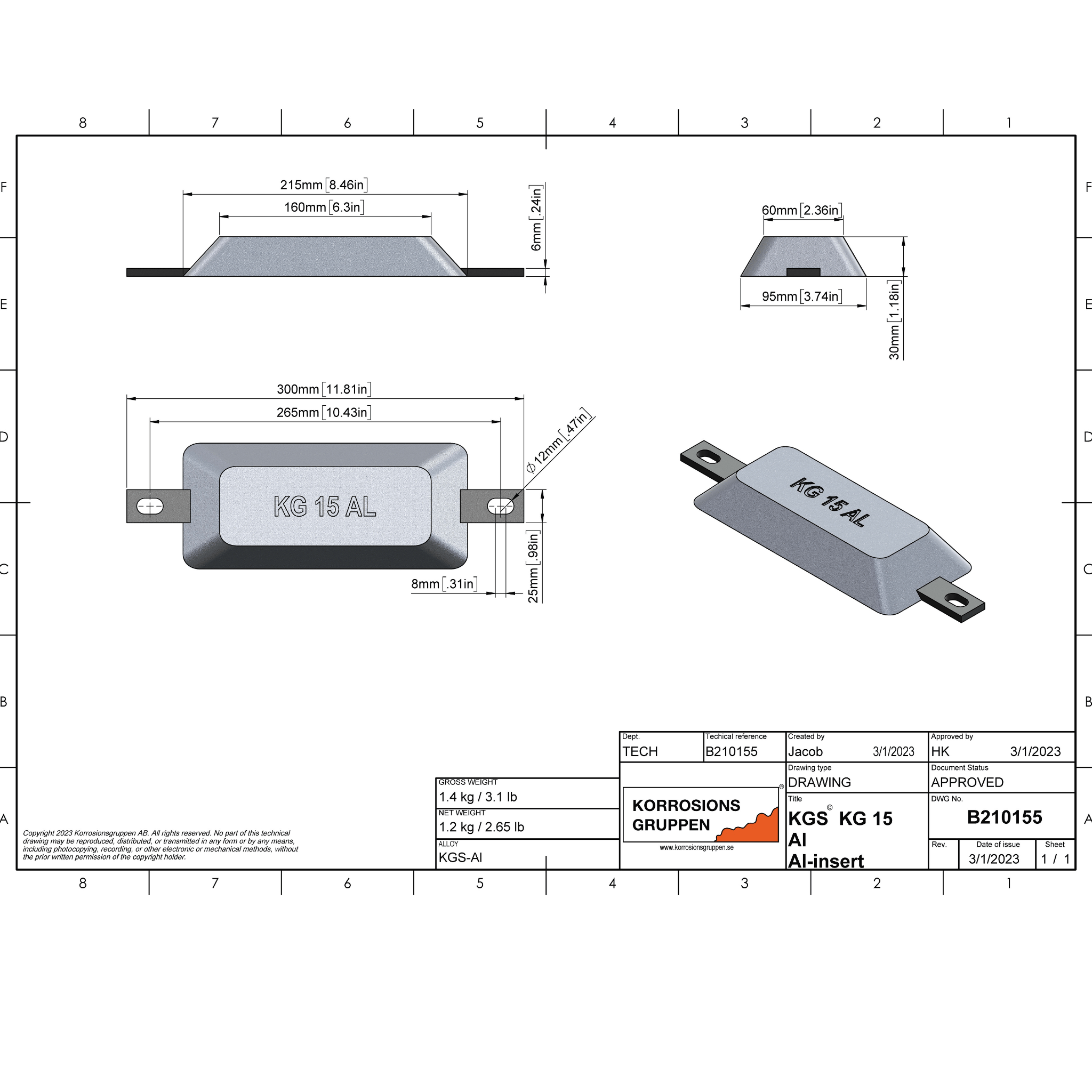 Aluminiumanod TYP 15 (AL-arm) - 215*95*30