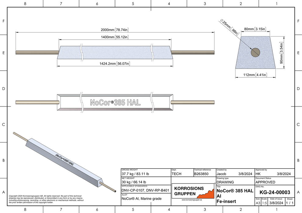 Aluminumanod Type 385HAL, 30 kg net, B263850