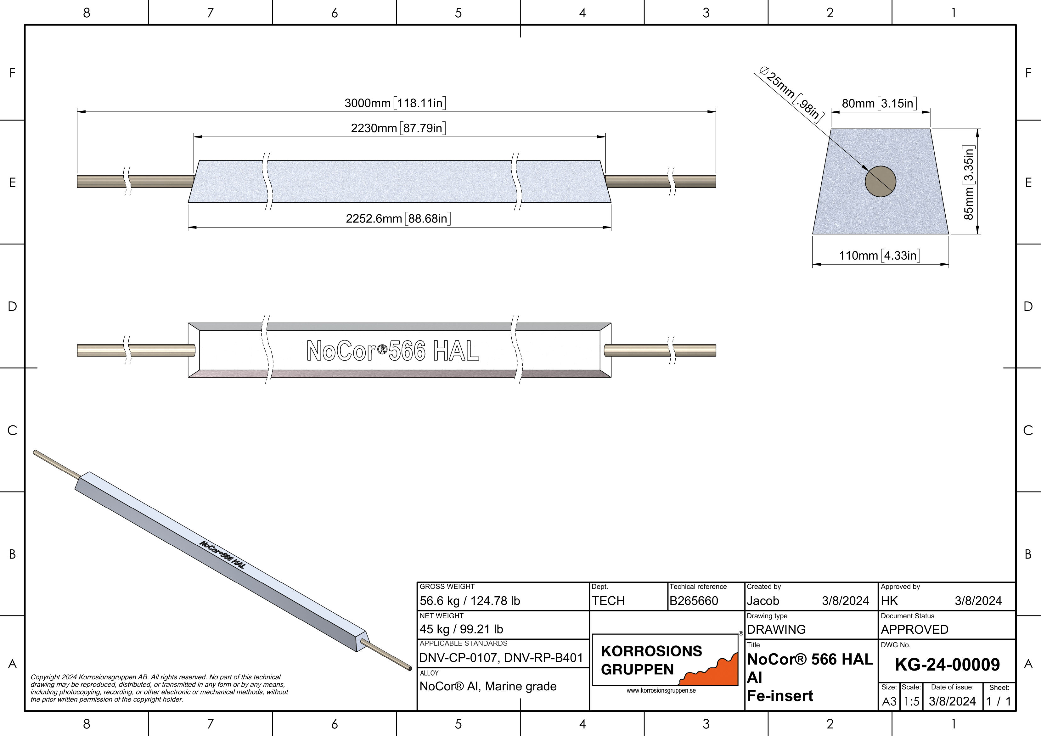 Aluminium anode TYPE 566HAL, 45 kg netto, B265660