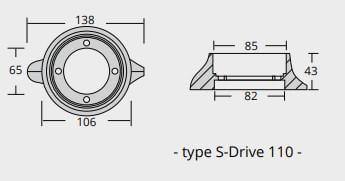 Zink anode Volvo Penta Type S-Drive 110, Motor anode, VP 875812, 0.895kg